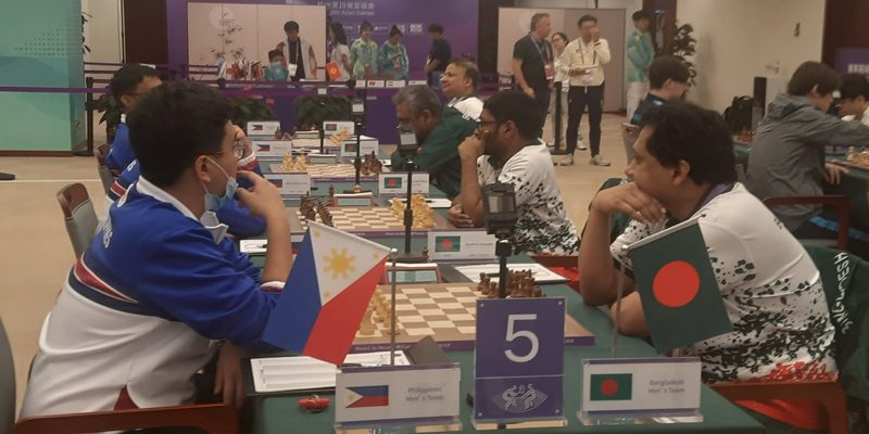 ১৯তম এশিয়ান গেমসের দাবা ডিসিপ্লিনের টিম ইভেন্টে বাংলাদেশ সপ্তম রাউন্ডে ১.৫-২.৫ গেম পয়েন্টে ফিলিপাইনের কাছে পরাজিত হয়েছে। এর ফলে ৭ রাউন্ড শেষে বাংলাদেশ দাবা দলের সংগ্রহ ৪ পয়েন্ট। চীনের হাংজু শহরে সপ্তম রাউন্ডে বাংলাদেশের গ্র্যান্ডমাস্টার এনামুল হোসেন রাজীব, আন্তর্জজাতিকমাস্টার মোহাম্মদ ফাহাদ রহমান ও গ্র্যান্ডমাস্টার নিয়াজ মোরশেদ যথাক্রমে ফিলিপাইনের আন্তর্জাতিকমাস্টার বেরসামিনা পাওলে, গ্র্যান্ডমাস্টার গোমেজ জন পোল…