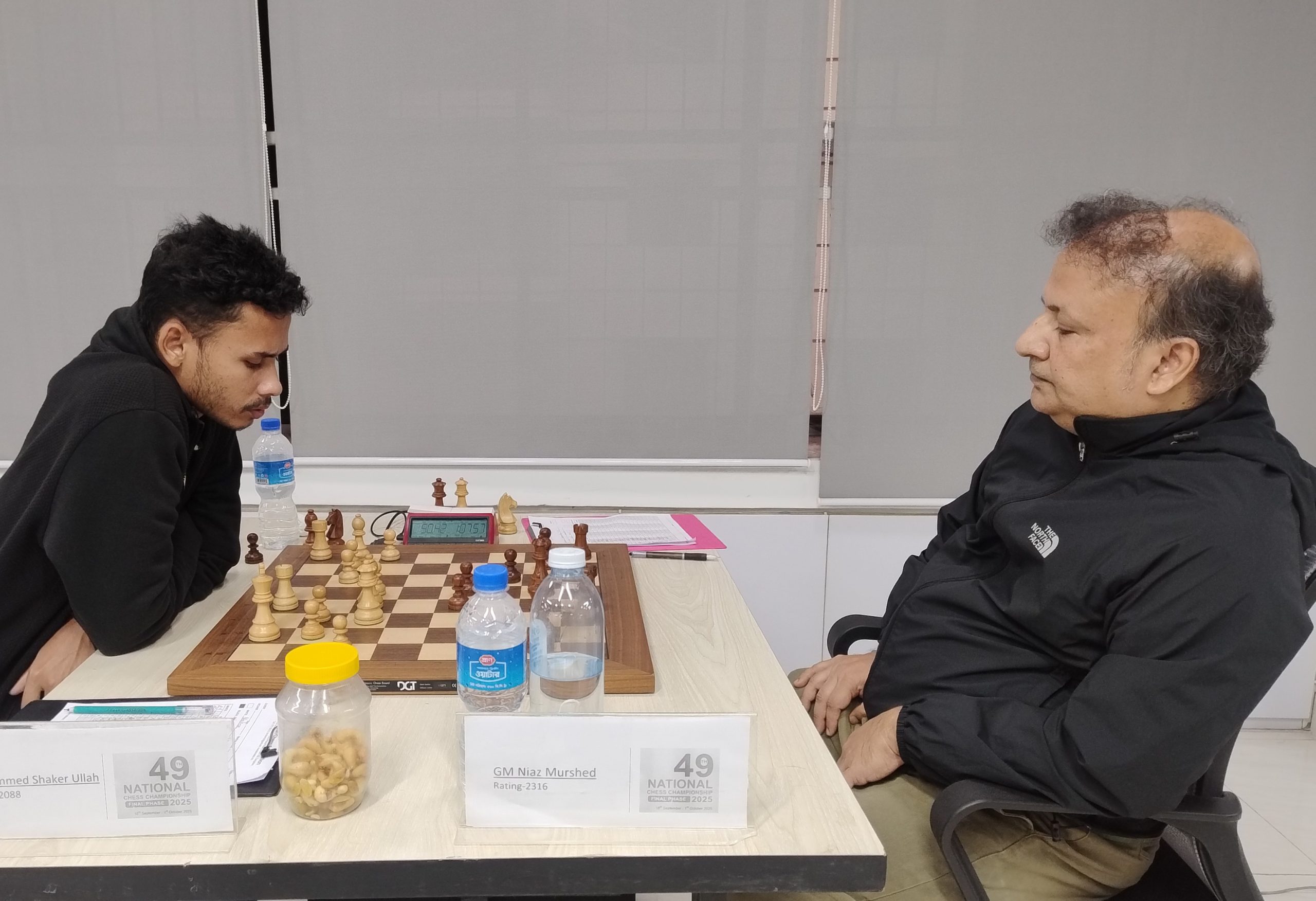 ইয়ুথ টাওয়ার অডিটোরিয়ামে ৪৯তম জাতীয় দাবা চ্যাম্পিয়নশিপের চূড়ান্ত পর্বের দ্বাদশ রাউন্ড শেষে বাংলাদেশ আনসারের গ্র্যান্ডমাস্টার নিয়াজ মোরশেদ ও আন্তর্জাতিকমাস্টার মোহাম্মদ ফাহাদ রহমান ৯.৫ পয়েন্ট নিয়ে যুগ্মভাবে শীর্ষে রয়েছেন।