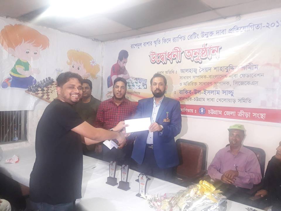 প্রতিযোগিতা বিজয়ীদের মধ্যে পুরস্কার বিতরণ করেন বাংলাদেশ দাবা ফেডারেশনের সাধারণ সম্পাদক ও ফিদের এশিয়ান জোন ৩.২ এর সভাপতি সৈয়দ শাহাবউদ্দিন শামীম।