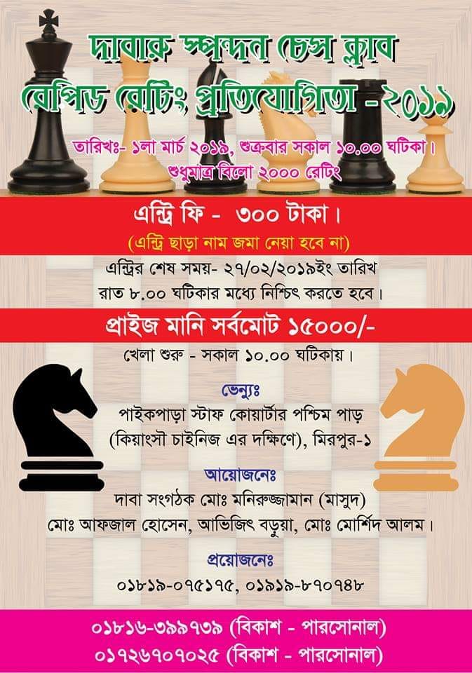 স্পন্দন র্যাপিড চেস টুর্নামেন্ট ১ মার্চ