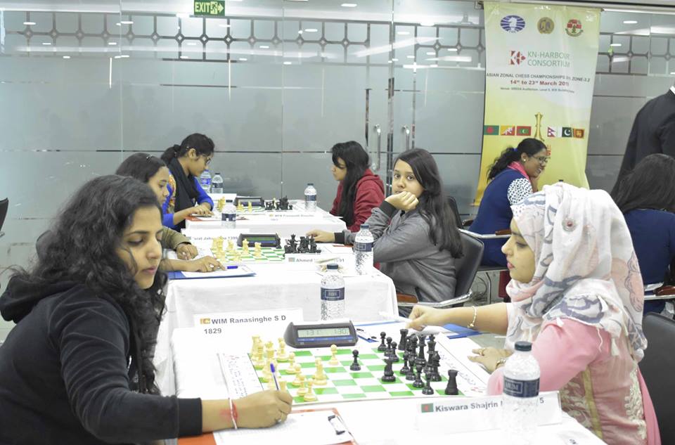 এশিয়ান জোনাল দাবা চ্যাম্পিয়নশিপের মহিলা বিভাগের সপ্তম রাউন্ড শেষে সাড়ে পাঁচ পয়েন্ট নিয়ে জনতা ব্যাংক অফিসার ওয়েলফেয়ার সোসাইটির মহিলা ফিদেমাস্টার শারমীন সুলতানা শিরিন ও এলিগেন্ট ইন্টারন্যাশনাল চেস একাডেমির ক্যান্ডিডেট মাস্টার নোশিন আঞ্জুম শীর্ষে রয়েছেন।