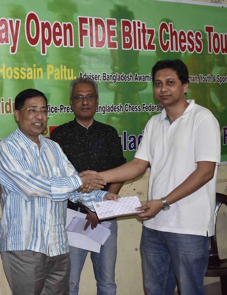 খেলা শেষে বিজয়ীদের মধ্যে পুরস্কার বিতরণ করেন বাংলাদেশ দাবা ফেডারেশনের সহসভাপতি কে এম শহিদউল্যা।