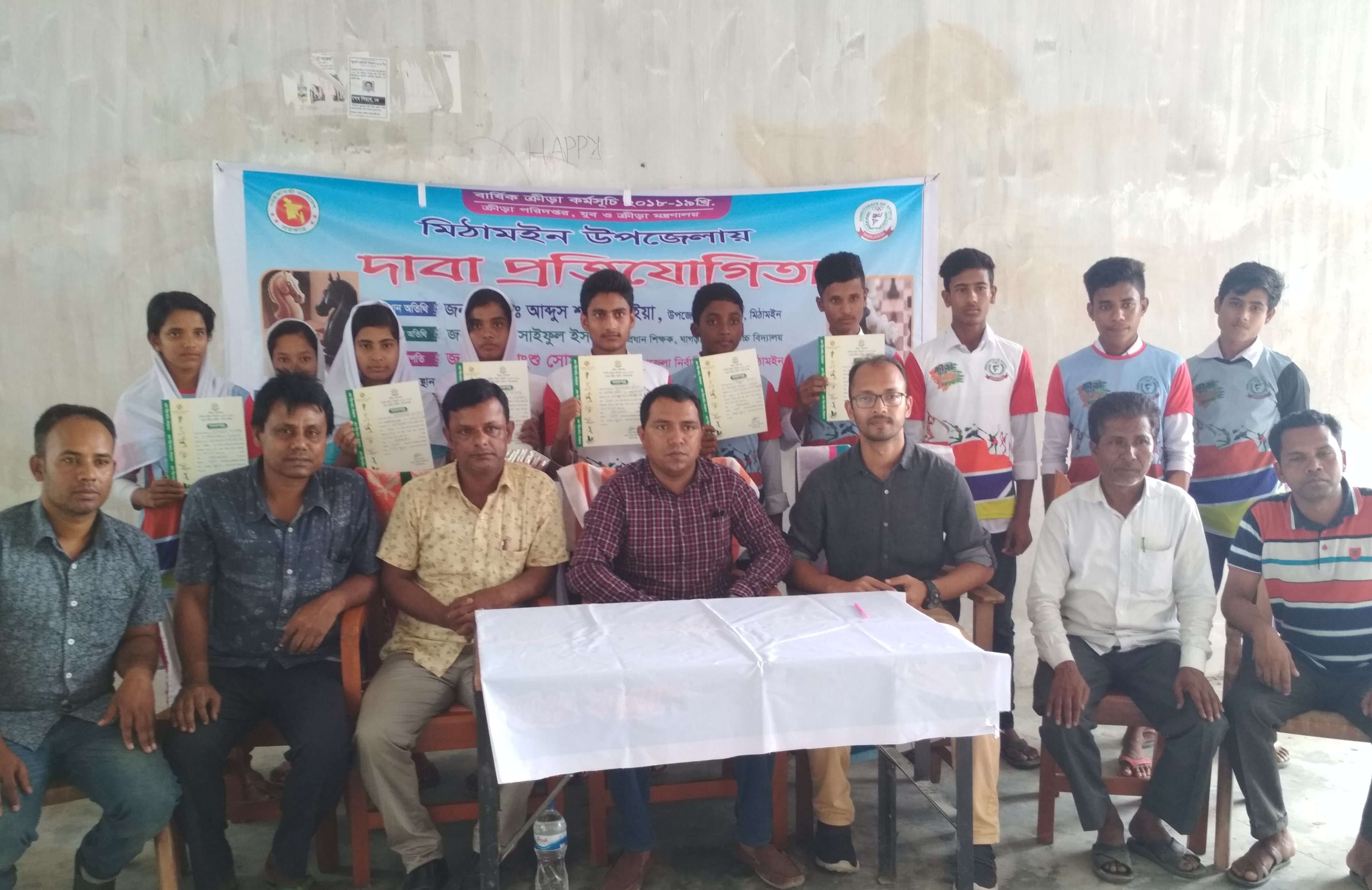ক্রীড়া পরিদপ্তরের বার্ষিক ক্রীড়া কর্মসূচির আওতায় মিঠামইন উপজেলা দাবা প্রতিযোগিতায় বালক বিভাগে তোফায়েল ভূইয়া এবং বালিকা বিভাগে মাহমুদা আক্তার চ্যাম্পিয়ন হয়েছেন।