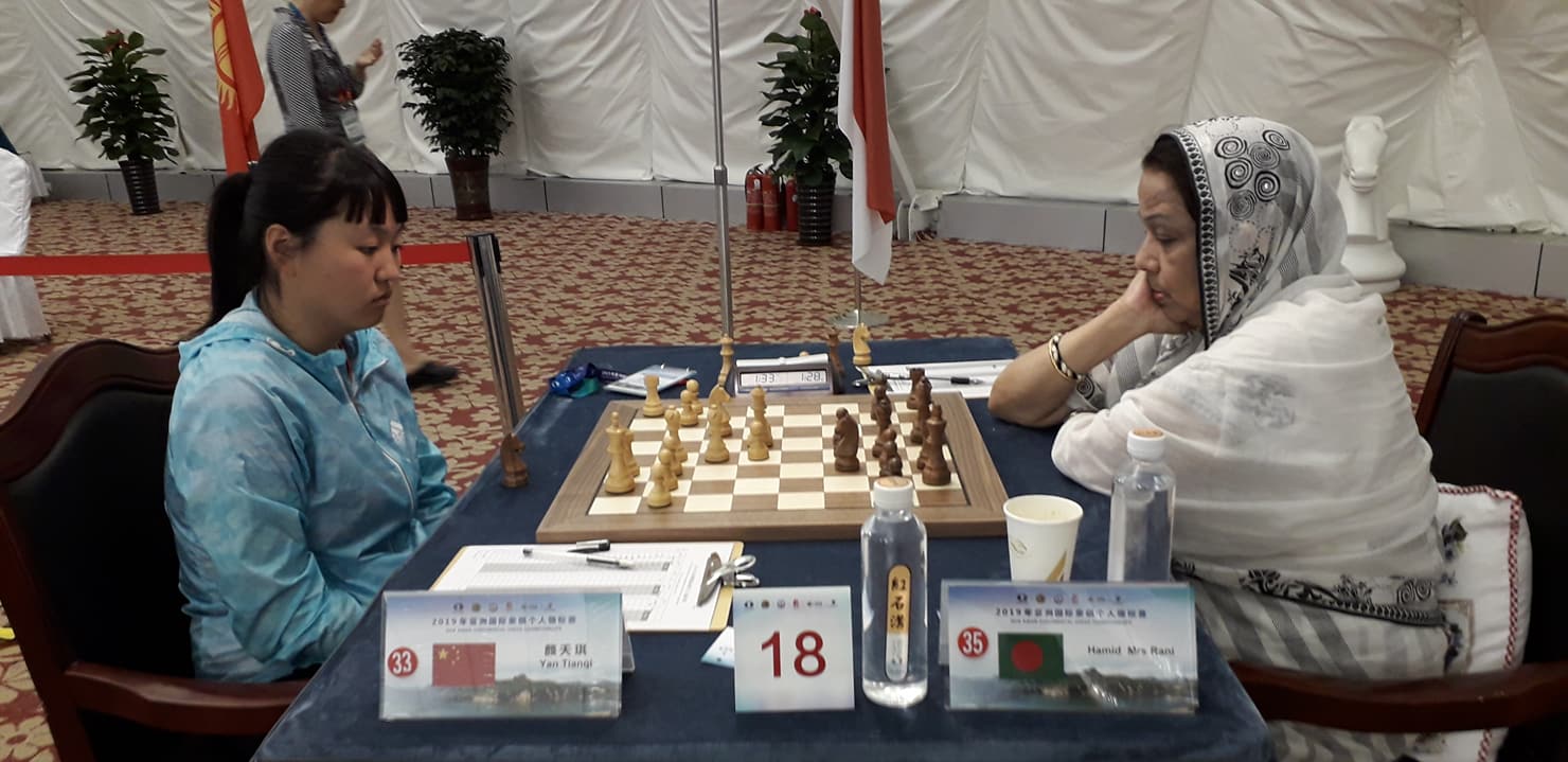 চীনের জিয়াংতাইয়ে আজ বুধবার উইমেন্স বিভাগে রানী হামিদ (১৯২৯) স্বাগতিক চীনের ইয়ান তিয়ানকির (২০৩৬) কাছে হেরে যান।এ নিয়ে তিনি টানা ছয় ম্যাচই পরাজয়ের মুখ দেখলেন।