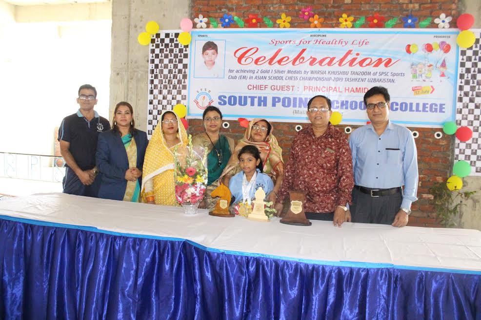 উজবেকিস্তানে অনুষ্ঠিত এশিয়ান স্কুল চেস চ্যাম্পিয়নশিপের তিন ফরম্যাটের মধ্য র্যাপিড ও স্ট্যান্ডার্ড ইভেন্টে দু’টি স্বর্ণপদক এবং ব্লিটজ ইভেন্টে একটি রৌপ্যপদক জয় করায় ওয়ারসিয়া খুশবু’কে আজ ১৭ জুলাই তার শিক্ষা প্রতিষ্ঠান সাউথ পয়েন্ট স্কুল এন্ড কলেজ সংবর্ধনা দিয়েছে।