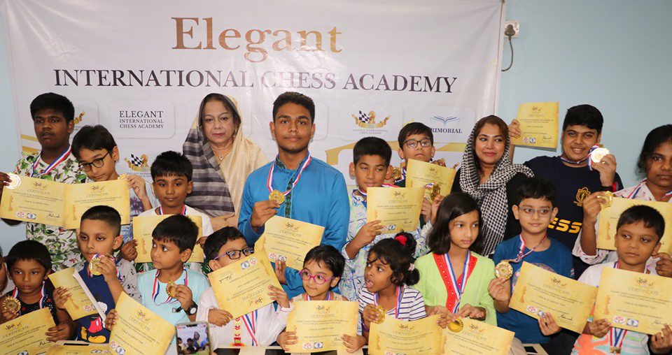 খেলা শেষে বিজয়ীদের মধ্যে পুরস্কার বিতরণ করেন অনুষ্ঠানের প্রধান অতিথি কিংবদন্তী দাবাড়ু উইমেন ইন্টারন্যাশনাল মাস্টার রানী হামিদ। সভাপতিত্ব করেন এলিগেন্ট ইন্টারন্যাশনাল চেস একাডেমীর ব্যবস্থাপনা পরিচালক ফিদে ইন্টারন্যাশনাল অর্গানাইজার মাহমুদা হক চৌধুরী মলি।