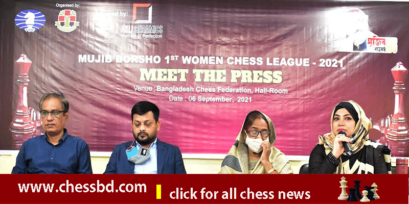 আকিজ সিরামিকসের পৃষ্ঠপোষকতায় ও বাংলাদেশ দাবা ফেডারেশনের আয়োজনে মুজিব শতবর্ষ ১ম নারী দাবা লিগের খেলা আগামী ৮ সেপ্টেম্বর বুধবার বিকেল ৩টা হতে দাবা কক্ষে শুরু হবে।