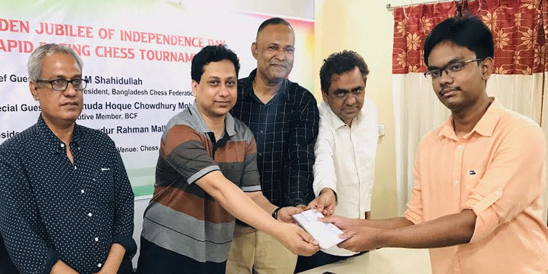 সুবর্ণজয়ন্তী স্বাধীনতা দিবস ফিদে র্যাপিড দাবা প্রতিযোগিতায় বাংলাদেশ আনসারের ফিদেমাস্টার তাহসিন তাজওয়ার জিয়া অপরাজিত চ্যাম্পিয়ন হয়েছেন। তিনি ৯ খেলায় ৮ পয়েন্ট পেয়ে শিরোপা জয় করেন।