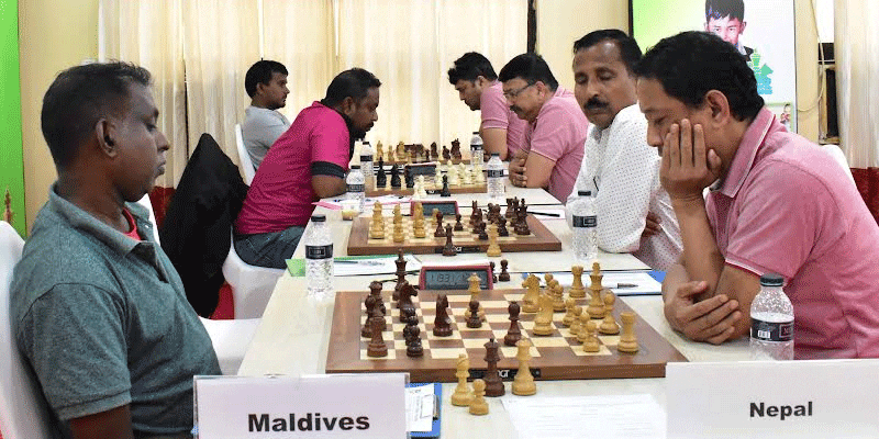 Maldives beat Nepal by 2.5-1.5 game points with FIDE Master Mohammad Shuaau and Candidate Master Abdul Rahman Ali defeated FIDE Master Rajbhandari Rajendra and Bajracharya Rajendra of Nepal respectively.