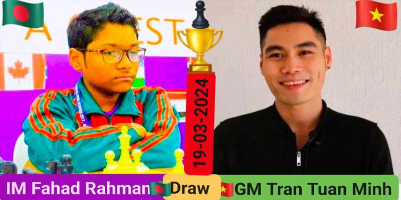 ফাহাদ সাদা ঘুঁটি নিয়ে মিনের সিসিলিয়ান ডিফেন্সের বিরুদ্ধে ৪০ চালে ড্র করেন।