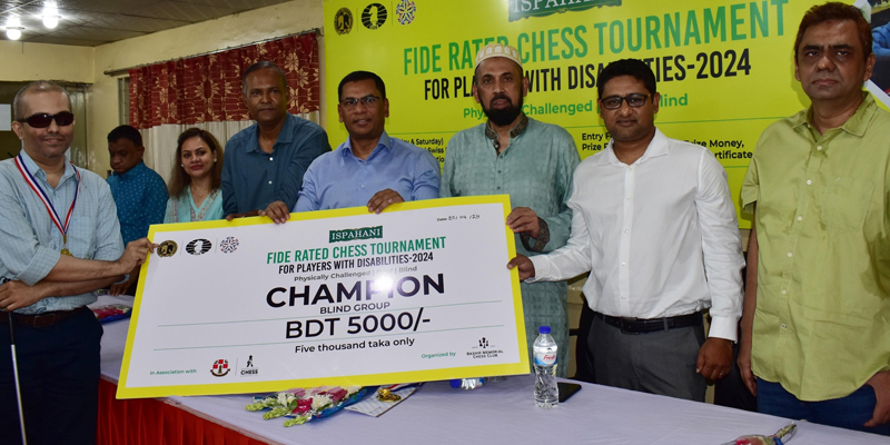 ইস্পাহানী ফিদে রেটিং দাবা প্রতিযোগিতায় দৃষ্টি প্রতিবন্ধী বিভাগে সৈয়দ এজাজ হোসেন ৫ ম্যাচে একটানা জয় পেয়ে অপরাজিত চ্যাম্পিয়ন হয়েছেন। এদিকে ৪ পয়েন্ট সংগ্রহ করে টাইব্রেকিং পদ্ধতিতে কক্সবাজারের মো. সুরত আলম রানারআপ ও গোপালগঞ্জের বাপ্পী সরকার তৃতীয়স্থান লাভ করেন। অপরদিকে ৩ পয়েন্ট নিয়ে টাইব্রেকিং পদ্ধতিতে ঢাকার আবিদ হোসেন চতুর্থ ও চট্টগ্রামের আব্দুল মনসুর জাবেদ পঞ্চম হয়েছেন।