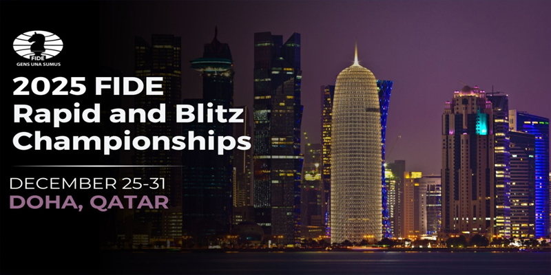 Following the resounding success of the 2024 FIDE World Rapid and Blitz Championships in New York City, FIDE is excited to announce that the 2025 edition of these landmark tournaments will return to Doha, Qatar. The event is scheduled from December 25 to December 31, 2025, with the Rapid Championships taking place from December 26 to 28, followed by the Blitz Championships on December 29 and 30.